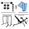 Rebuwo Fitness Seti | Rebuwo Bench Sehpası + 28 kg Dambıl Seti + İkili Paralel Dip Bar + NBR Yoga Matı(Mavi)