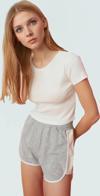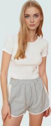 Bu beyaz crop bluz, yaz aylarında hem şık hem de rahat görünmek isteyenler için mükemmel bir seçim. Vücuda oturan kalıbı ve esnek örme kumaşından dolayı gün boyu konfor sunuyor. Bisiklet yakası ile modern ve sade bir tasarıma sahip olan bluz, farklı kombin seçenekleriyle her ortama uyum sağlar. Polyester, pamuk ve elastan karışımı kumaş, nefes alabilirliği ve dayanıklılığı bir araya getiriyor. Ayrıca, kolayca makinede yıkanabilir özelliğe sahip.