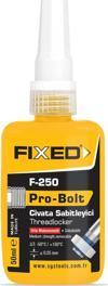 Fixed F-250 Pro-Bolt, orta mukavemet seviyesinde tutunma sağlayan, sökülebilir yapıdaki bir civata sabitleyicidir. Vidalı bağlantıların titreşim, darbe veya mekanik yük altında gevşemesini önlemek için formüle edilmiştir. Motor blokları, konveyör bantları, genel makine ekipmanları ve bakım-onarım süreçlerinde güvenilir bir sabitleme performansı sunar.