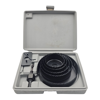 Bu set, elektrik tesisatı ve diğer ahşap, alçıpan veya plastik yüzeylerde daire şeklinde delikler açmak için tasarlanmış 8 parçalık eksiksiz bir takımdır. Set, tüm parçaların güvenli bir şekilde saklanabileceği sağlam bir plastik çanta içinde sunulur.