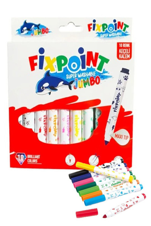 Fixpoint Jumbo Keçeli Kalem 10 Renk 1 Paket Fixpoint Kalem Seti Keçeli Kalem Seti Yıkanabilir Zararsız Maxi