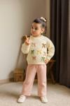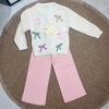 Pastel fiyonk aplikeleri ve yumuşak triko dokusuyla 3–10 yaş kız çocuklar için hem sevimli hem konforlu iki parçalı takım!