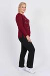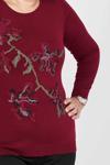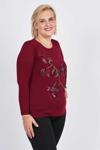 Detay: Önü Çiçek Nakış Detaylı, Uzun Kollu, Yuvarlak Yaka Bluz;