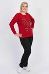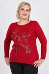 Detay: Önü Çiçek Nakış Detaylı, Uzun Kollu, Yuvarlak Yaka Bluz;