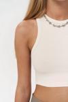 Pamuklu kumaştan crop t-shirt. Bisiklet yaka, kolsuz. Fitilli şeritli kenarlı.