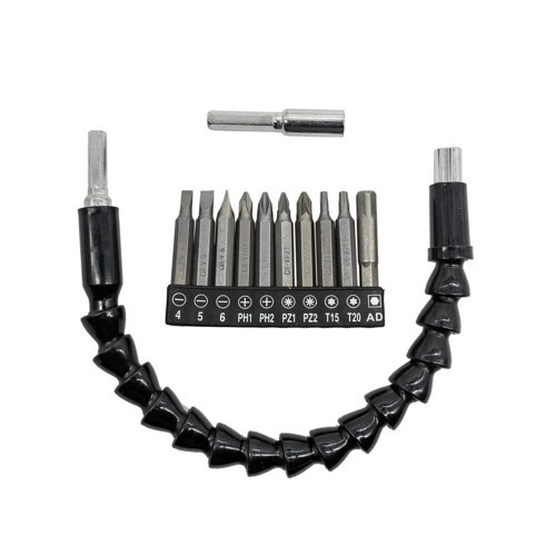 Esnek şaft sayesinde dar alanlarda bükülerek çalışabilme, bits tutucu ve adaptör ile uyumlu kullanım sağlar. Set, hem düz hem de yıldız ve torx uçları içerir; bu sayede farklı vidalama ve montaj işlerinde ideal bir çözümdür.