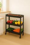 Sas Haus Flex Elite Pro 3 Katlı Mat Siyah Tekerlekli Çok Amaçlı Raf Ünitesi – Banyo, Mutfak & Organizer - S-8