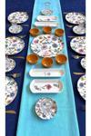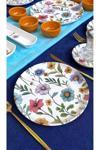 - Çiçek desenleriyle süslenmiş, göz alıcı bir görünüm sunan 6 kişilik kahvaltı takımı.; - Yuvarlak formu ile modern ve şık bir tasarıma sahip, her türlü sofra düzenine uyum sağlar.; - Mikrodalgada güvenle kullanılabilme özelliği sayesinde pratik ve hızlı ısıtma imkanı sunar.; - Seramik malzemesi ile dayanıklılığı artırılmış, uzun ömürlü kullanım vaat eder.;