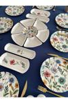 - 8 kişilik geniş kapasite, aile ve arkadaşlarınızla keyifli kahvaltı deneyimleri sunar.; - Yuvarlak tasarımı ile modern ve şık bir görünüm sağlar, sofranızda estetik bir dokunuş yapar.; - Çiçek desenleriyle süslenmiş bu kahvaltı takımı, masanıza canlılık ve neşe katar.; - Mikrodalgada güvenle kullanılabilme özelliği sayesinde pratiklik kazandırır; sıcaklık kontrolü kolaylaştırılır.; - Yüksek kaliteli seramik materyali ile uzun ömürlü kullanım vaat ederken, dayanıklılığından ödün vermez.