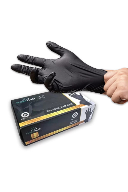 FloraPlast Pudrasız Elastik Siyah Eldiven 100 Adet
