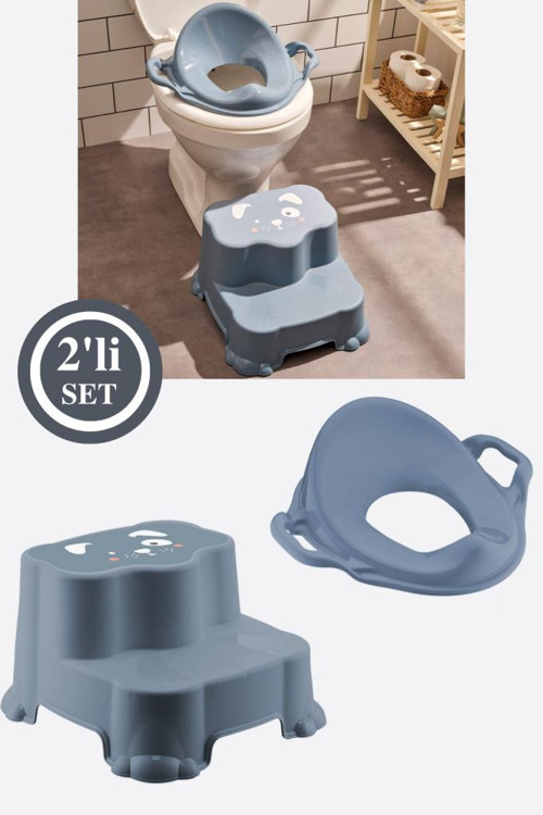 Flosoft Kaydırmaz Çift Basamaklı Çocuk Taburesi ve Klozet Tuvalet Alıştırma Adaptörü 2'li Set MAVİ