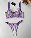 İntive lingerie-innocent&attractive Flower Love Çiçek Desenli Transparan Dantel Sütyen Takım (Pembe, Mor, Somon)