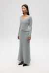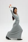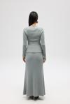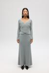 Bedeni saran kruvaze bağlamalı, uzun kollu triko ve rahat formda, beli lastik örgülü, maxi triko etekli takım.