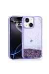 Fly Gifts İphone 15 Kılıf Sıvılı Simli Şeffaf Arka Yüzey Zore Keto Silikon Kapak - Mor