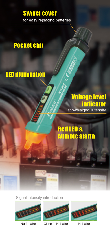 - Metalik temas gerektirmeden 12 ile 1000 VAC arasındaki alternatif akım voltajını algılar.