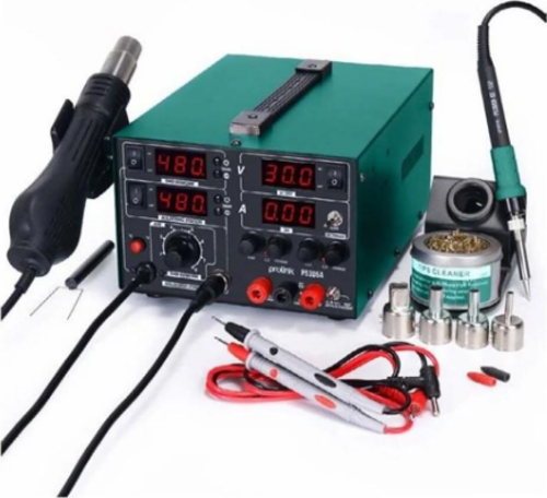 Bu model, yüksek performanslı sıcak hava tabancası, dijital kontrollü havya ve 0-30 V / 0-5 A ayarlı güç kaynağı ile elektronik kartlarda hassas sökme, yeniden lehimleme ve test işlemlerinde güvenilir sonuçlar sağlar.