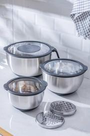 Focus Pro karıştırma kabı seti, paslanmaz çelik kap seti, 16-20-24 cm karıştırma kapları, hava geçirmez kapaklı saklama kabı, mutfak karıştırma seti, rende aparatıyla karıştırma kabı, şık mutfak gereçleri, çok amaçlı paslanmaz çelik set