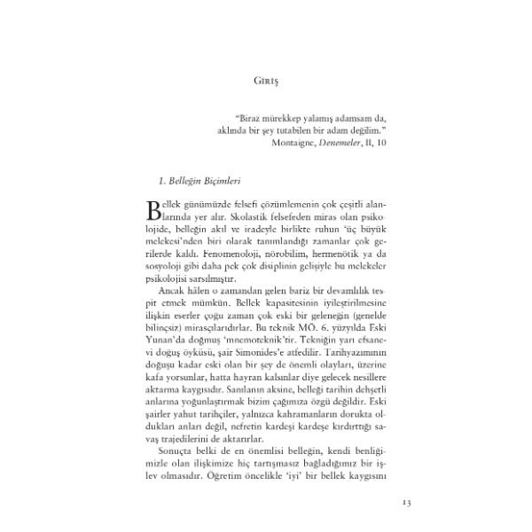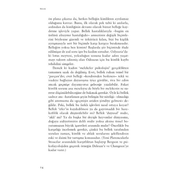 Bellek nedir? Geçmiş yaşantıların yalnızca anılarda, ama yepyeni ve bambaşka bir anlam temelinde kurulmasıdır. Elinizdeki kitap, belleğin, felsefe, bilim, antropoloji, tarih, kültür ve edebiyat gibi alanlarda nasıl kavrandığını anlaşılır biçimde ortaya koymaktadır. Belleğin zamanla, tarihle, insan ruhuyla, siyasetle, gündelik yaşamla ve geçmişle ilişkisini anlamak açısından eşsiz bir kaynak…