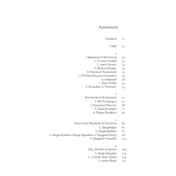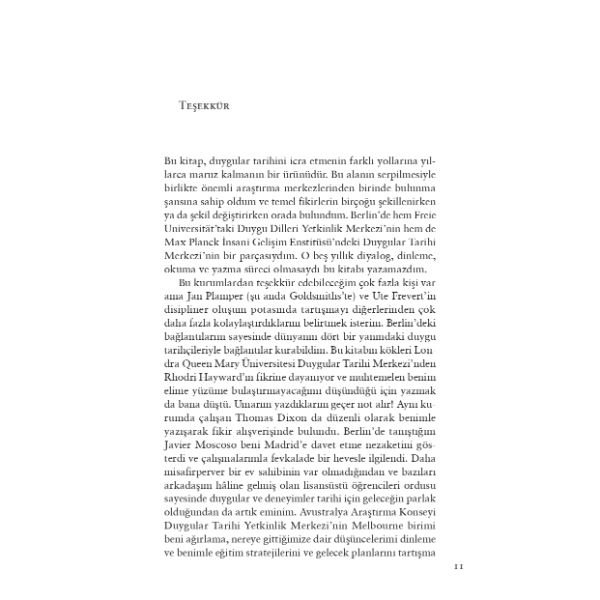 Rob Boddice, bu kitapta, hızla gelişen ve her geçen gün daha fazla ilgi gören duygular tarihinin kavramlarını, teorilerini, yöntemlerini, başarılarını, sorunlarını ve geleceğini masaya yatırıyor. Duygular tarihinin antropoloji, psikoloji, felsefe ve nörobilimle kurduğu ilişkilerin bir haritasını çıkarıyor. Tarihyazımının bu güncel ve gelecek vaat eden dalının, disiplinin temel varsayımlarıyla nasıl hesaplaştığını, başka alanlarla kurduğu köprüler aracılığıyla geçmişe bakmanın güncel ve daha farklı bir yolunu nasıl sunduğunu ortaya koyuyor. Tarih disiplininin hem içinden hem de dışından duygular tarihine yöneltilen eleştirilere bir yanıt veriyor. Bu yeni alanın, insan beyninin işleyişine, bilişsel faaliyetlere ve genel olarak insan deneyimine ilişkin anlayışımızı zenginleştirmenin bir yolunu sunduğunu da gösteriyor.