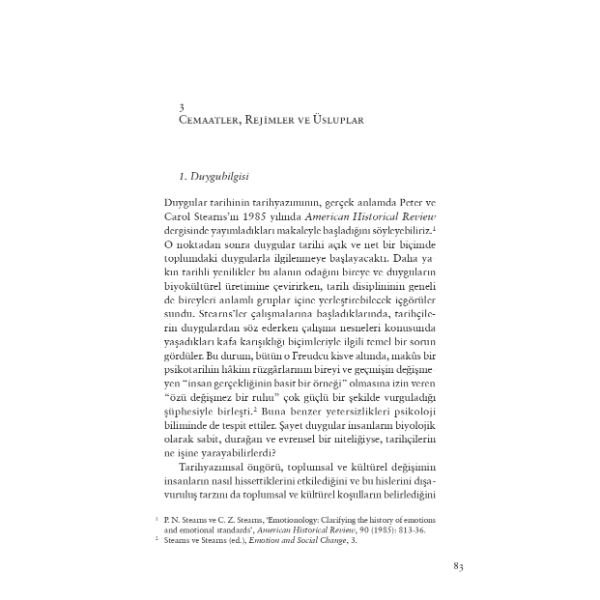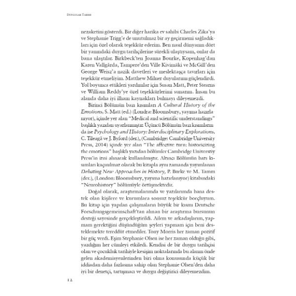 Tarihçiler bir süredir, insanların duygularının ve duygularını ifade etme biçimlerinin geçmiş olayların gidişatında oynadığı rolün üzerine daha fazla eğilmeye başladılar. Duyguların tarihe yön verebileceği fikri yeni değilse de duyguların evrensel değil tarihsel olabileceği fikri, geçmişi anlama çabasının önüne yeni sorunlar çıkardı; tarihyazımı için yepyeni olanaklar, fırsatlar ve konular da sundu.