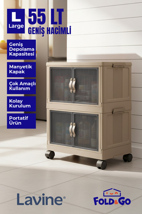Fold&Go 2 Katlı Portatif Organizer TekerlekliDolap - Komidin Çok Amaçlı Mıknatıs Kapaklı Katlanır İstiflenebilir