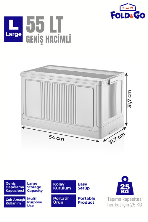 - Modern tasarımıyla dikkat çeken Fold Go, evinizdeki düzeni kolayca sağlar.; ; - 32 cm yüksekliği, 32 cm derinliği ve 54 cm genişliği ile ideal boyutlarda bir saklama çözümü sunar.; ; - Dayanıklı plastik materyali sayesinde uzun ömürlü kullanım vaat eder.; ; - Toprak rengiyle doğal bir görünüm kazandırarak mekanınıza uyum sağlar.; ; - Tekli portatif organizer kapaklı kasa, katlanabilir yapısıyla yerden tasarruf etmenizi sağlar ve istiflenebilir özelliğiyle depolama alanınızı maksimize eder.; ; - Enine modeli, içeriğinizi düzenli bir şekilde organize etmenize olanak tanırken, gri renk seçeneği modern dekorasyon anlayışına hitap eder.; ; - Çekmece sayısının tek olması, ihtiyacınız olan eşyaları hızlıca bulmanız için pratik bir çözüm sunar ; Geniş renk seçenekleriyle şık görünümüyle dikkat çeken bu kutu, evinizin dekorasyonuna kolayca uyum sağlar.; Dayanıklı plastik malzemesi sayesinde uzun süreli kullanım imkanı sunar ve hafif yapısıyla taşıması kolaydır.; Kapaklı tasarımı sayesinde içerisindeki eşyaların tozdan korunmasını sağlar ve düzenli bir görünüm kazandırır.; Hafif çiziklere ve darbelere karşı dayanıklıdır.; Banyodan mutfağa, çocuk oyuncaklarından hırdavat malzemelerini organize etmekte gayet başarılı bir üründür.; Kamp ortamında denenmiş ve kamp malzemelerini organize etmekte gayet başarılı bir üründür.; Esnek ve sağlam yapısıyla yarı yolda bırakmaz, demonte olması sebebiyle kolayca sökülüp takılabilir.; Üretici firma güvencesi ile rahatlıkla sipariş verebilirsiniz.; Her türlü destek talepleriniz ve sorularınıza ivedilikle cevap verilecektir ;