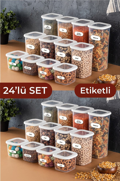 Foly Etiketli Kare Erzak Saklama Kabı 24'lü Set ; ; Modern mutfakların vazgeçilmezi Foly Etiketli Kare Erzak Saklama Kabı 24'lü Set ile mutfakta düzeni yakalayın! Bu özel set, her türlü yiyecek ve kuru gıdanızı taze ve düzenli bir şekilde saklamanız için tasarlandı.; Beyaz, şık tasarımı ile mutfak dekorunuza zahmetsizce uyum sağlar.; ; ; Ürün Özellikleri: ; 8x(0,55 litre, 1,2 litre, 1,75 litre) farklı boyutta toplam 24 adet saklama kabı ; Ürün Ölçüleri: ; Küçük Boy 0,55 lt: 11 x 11 x 9,5 cm ; Orta Boy 1,2 lt: 11 x 11 x 16,5 cm ; Büyük Boy 1,75 lt: 11 x 11 x 24,5 cm ; BPA içermeyen yüksek kaliteli plastikten üretilmiştir ; Gıdalarınızı hava, nem ve tozdan koruyan sıkı kapanan kapaklar ; Kullanılmadığında yer tasarrufu sağlayan iç içe geçebilen tasarım ; Bulaşık makinesinde yıkanabilir ve kolay temizlenebilir ; Şeffaf gövde ile içerikleri kolayca görülebilir ; Pratik kullanım için kenarlara yerleştirilmiş rahat kavrama yerleri ; Üzerine yazılabilir etiket bölümü ile içeriğin kolayca tanımlanması ; ; Faydaları: ; Mutfağınızda maksimum düzen ve verimlilik sağlar ; Farklı boyutlardaki kablarla çeşitli gıdalara uyumlu saklama imkanı ; Yiyeceklerin tazelik ve lezzetini korur ; Çevreye duyarlı, tekrar kullanılabilir ve uzun ömürlüdür ; Kolay temizlenebilirlik sayesinde hijyenik saklama ; Etiketleme özelliği ile son kullanma tarihleri ve içerikleri hızlıca gözlemleyip yönetebilme ; ; Evinizin düzeni ve mutfak estetiği için Foly Etiketli Kare Erzak Saklama Kabı 24'lü Set'i hemen keşfedin! ;