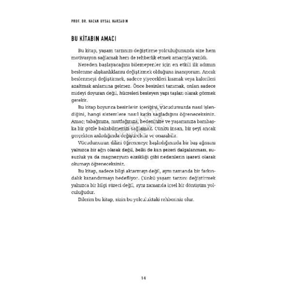 Prof. Dr. Nazan Uysal Harzadın’ın bilimsel bilgisi ve kişisel deneyimiyle kaleme alınan bu kitap, “Ne yemeliyim?” sorusunun ötesine geçiyor. “Neden, nasıl ve ne zaman?” sorularına da yanıt arıyor.