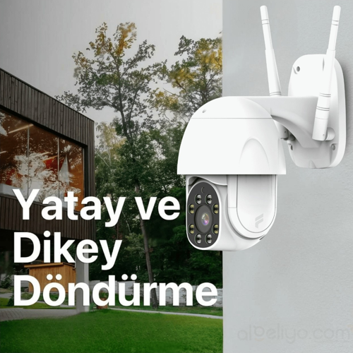 AlGeliyo Fonri Dış Mekan Wi-Fi Güvenlik Kamerası, Hareket Tespit/takibi , 360°, IP65 Su Geçirmez, Renkli Gece Görüşü, Çift Yönlü Ses, Bulut/yerel Depolama, Sesli ve Işıklı Alarm ÖzellikleriNeden idefix?