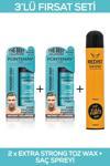 FONTENAY SAÇ ŞEKİLLENDİRİCİ PUDRA TOZ WAX X2 + SAÇ SPREYI 400ML 3 LÜ SET Fontenay Anlık Saç Şekillendirici Pudra 20g Sıradan saç şekillendiricilerden farklı olarak yoğun konsantre formülü sayesinde saçlarınıza vermek istediğniz şekli en kısa sürede verebilirsiniz. Toz wax normal waxlara göre etkisinin daha yoğun olması ve kullanım kolaylığından dolayı pudra wax kuaför salonlarında ve berberlerde en çok kullanılan kuaför malzemeri arasına girmektedir. Toz waxı kullanan kişilerin memnuniyet oranı yüksek olmakla birlikte toz wax kullanan erkek ve kadınları pozitif yorumları pudra waxı hızlı bir şekilde diğer saç şekillendiricilerinden saç spreyi, saç köpüğü ve jöleden ayırdı. Toz wax kullanımı nasıl olmalının cevabı saçlarınızı duruladıktan sonra hafif nemli halde sacınıza ekleyip eliniz ve fön makinenizle istediğiniz şekili verin. Sonrasında sabitlemek içinde saç spreyinizle saç şeklinizi sabitleştirin..