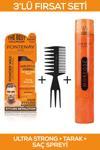 Fontenay Saç Şekillendirici Pudra Toz Wax Ultra Strong Turuncu + Şekil Tarağı + Saç Spreyi 400ml 3'Lü Set