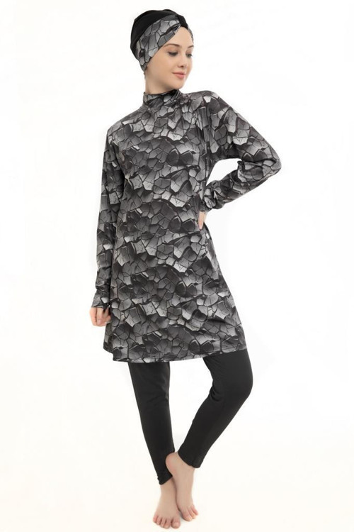 Ürün Desenli Likralı Tam Kapalı Tesettür Mayo