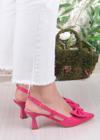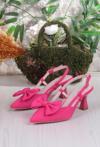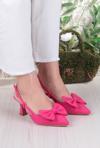 Fort 018-407 Fls Saten Önü Kapalı Fiyonklu Arkası Açık Topuklu Ayakkabı