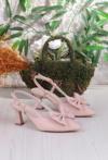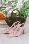 018-407 Fls Saten Önü Kapalı Fiyonklu Arkası Açık Topuklu Ayakkabı