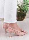 Papuç Sepeti 145 Kadın Taşlı Arkası Açık 6 Cm Topuklu Ayakkabı
