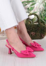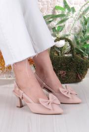 Fort 018-407 Fls Saten Önü Kapalı Fiyonklu Arkası Açık Topuklu Ayakkabı