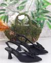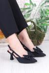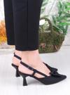 018-407 Fls Saten Önü Kapalı Fiyonklu Arkası Açık Topuklu Ayakkabı