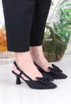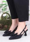 Fort 018-407 Fls Saten Önü Kapalı Fiyonklu Arkası Açık Topuklu Ayakkabı