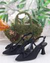 718 Siyah Cilt Sivri Burunlu Topuklu Bilekten Bağlamalı Kadın Ayakkabı - Image 1