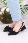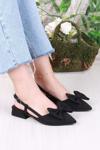 Fort 018-903 Fls Saten Fiyonk Detaylı Alçak Topuk Arkası Açık Önü Kapalı Kadın Ayakkabı