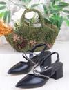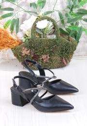 110-411 Çapraz Taşlı Arkası Açık Klasik Topuklu Kadın Ayakkabı