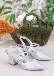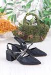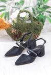 Fort 110-411 Saten Simli Taşlı Arkası Açık Klasik Topuklu Kadın Ayakkabı