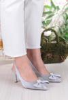Fort 129-1070 Fls Saten Taşlı Fiyonk Detaylı Arkası Açık Önü Kapalı Topuklu Kadın Ayakkabı