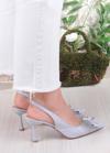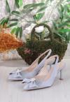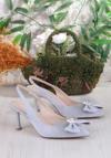 129-1070 Fls Saten Taşlı Fiyonk Detaylı Arkası Açık Önü Kapalı Topuklu Kadın Ayakkabı
