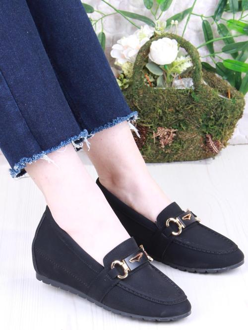 Fort 34065 Minalya Siyah Hafif Rahat Dolgu Taban Şık Kadın Günlük Ayakkabı