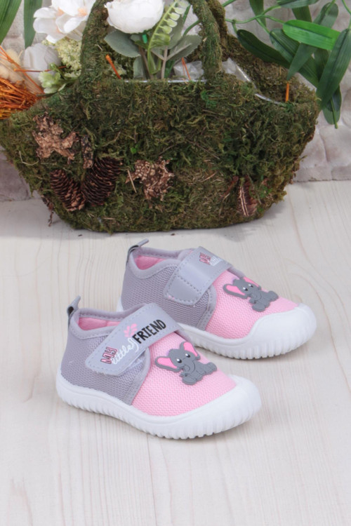 Fort 3448 Gz Fil Figürlü Anaokulu Kreş Ev Kız Çocuk Keten Panduf Ayakkabı