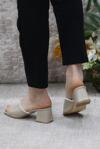 Fort 6395 Taşlı Topuklu Kadın Terlik Model Ares Topuk Boyu 5 Cm Suni Deri Ev Terliği Günlük Kadın Terlikği