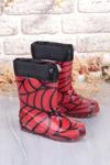Fort 7061 Kırmızı Desenli İçi Peluşlu Su Geçirmez Erkek Çocuk Kar Yağmur Çizmesi