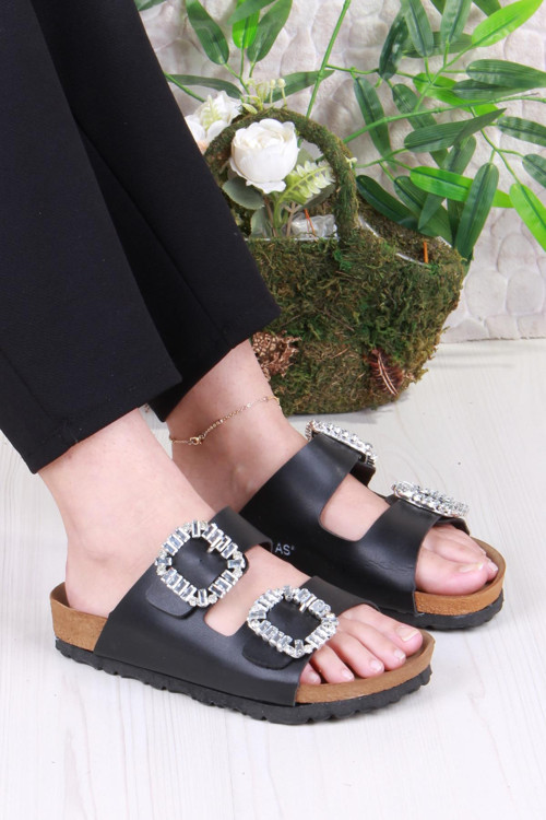 Fort 8732 Anatomik Rahat Taban Taşlı Çift Tokalı Şık Kadın Terlik