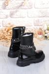 Ortopedikal Turkuaz Filet Kız Çocuk Bot Siyah Mat % 100 Deri Ortopedik Anatomik Fermuar-Bağcıklı